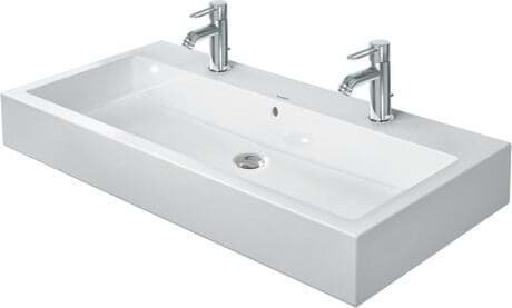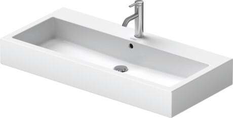 Text specifikace Umyvadlo DURAVIT Vero ze sanitární keramiky s lavicí s otvorem pro baterii pro centrální instalaci jednootvorové baterie (volitelně tříotvorová baterie) nebo bez otvoru pro baterii. Obdélníkové umyvadlo. Montáž je součástí dodávky. Abmessungen(BxTxH) 1000x470x175mm. Barva bílá a černá pro provedení: bez otvoru pro baterii obj. č. 045410..60, pro jednootvorovou baterii obj. č. 045410..00, pro tříotvorovou baterii obj. č. 045410..30. Barva bílá pro provedení: bez přepadu pro jednootvorovou baterii obj. č. 0454100041, pro tříotvorovou baterii obj. č. 0454100044, bez otvoru pro baterii obj. č. 0454100041. č. 0454100070