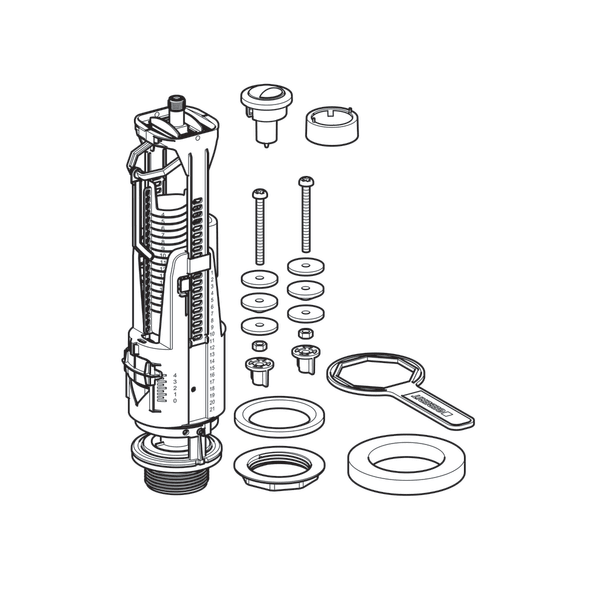 Geberit vypouštěcí ventil kompletní typ 240, pro keramické nádrže, malé a velké splachování 136.901.21.2 stejný jako 136.907.21.2, ale s českým popisem.