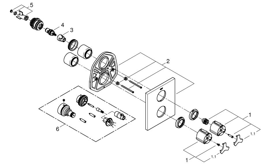 rukojeť pro ovládání objemu s GROHE EcoButton (úsporné tlačítko s individuálně nastavitelnou zarážkou)