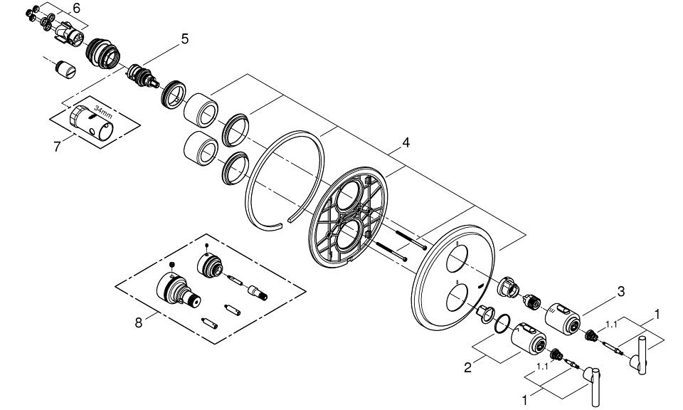 Tlačítková pojistka GROHE SafeStop na 38 °C