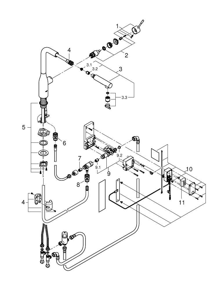 Ovládání nohou: aktivace vody prostřednictvím kontaktu se senzorem