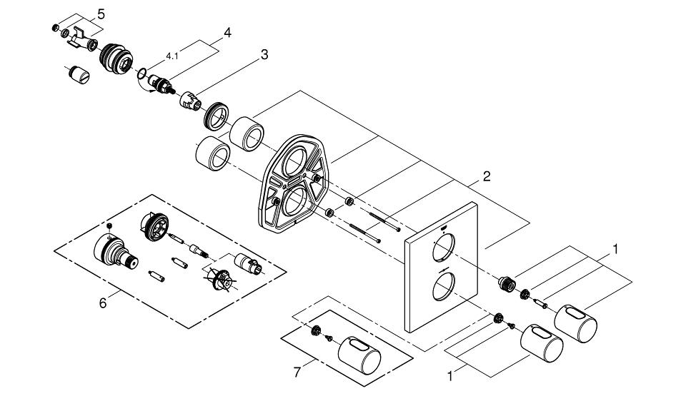 rukojeť pro ovládání objemu s GROHE EcoButton (úsporné tlačítko s individuálně nastavitelnou zarážkou)