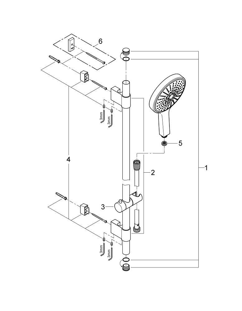 GROHE FastFixation Plus (nastavitelná vzdálenost mezi držáky sprchy na stěně pro přizpůsobení stávajícím vrtáním)