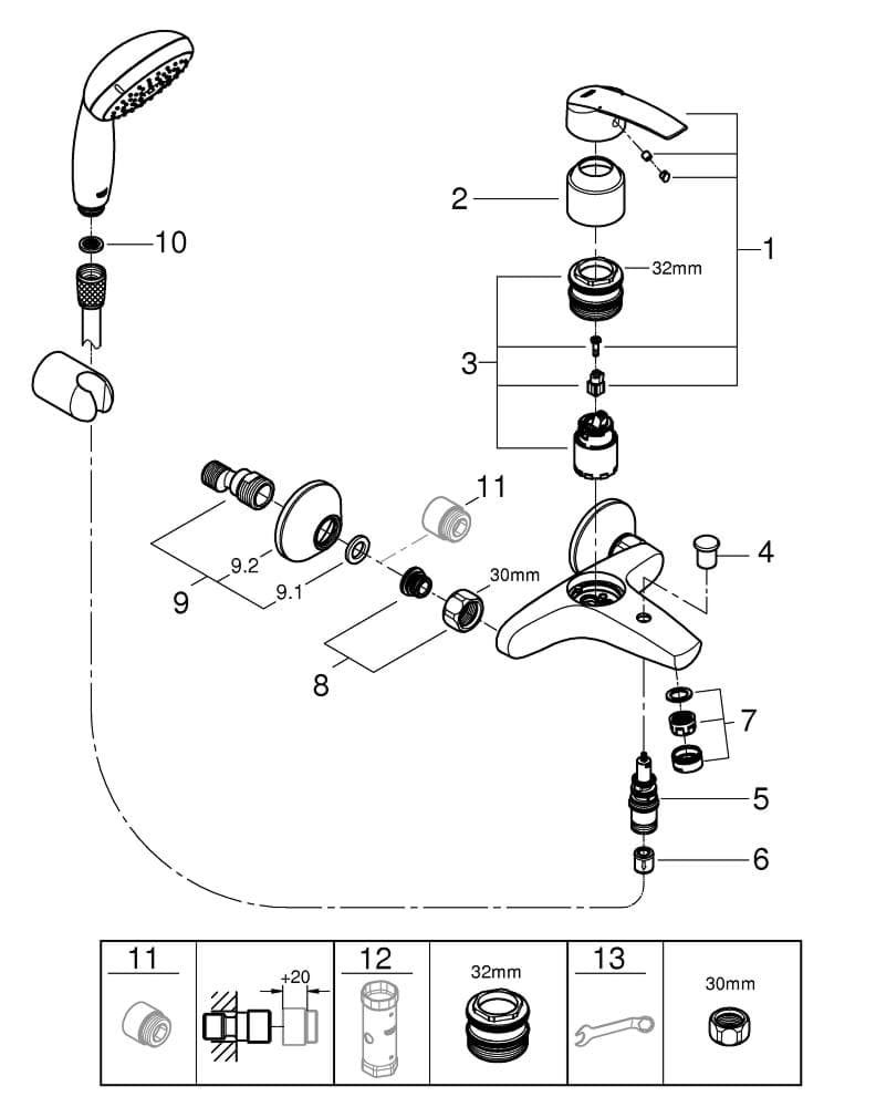 automatický přepínač: vana/sprcha