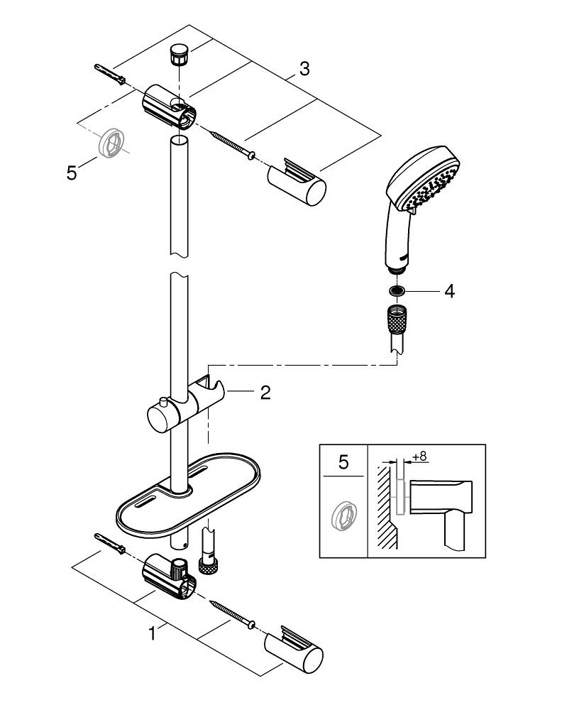 GROHE FastFixation (horní držák nastavitelný pro přizpůsobení stávajícím montážním otvorům)