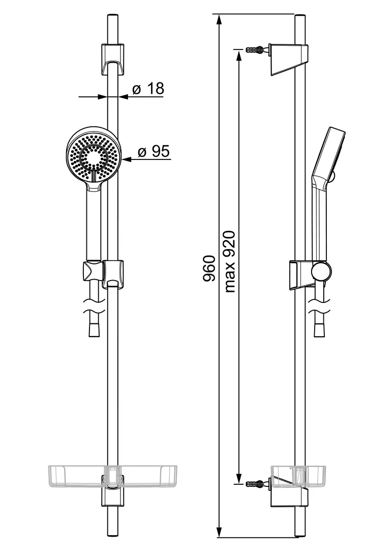 Ruční sprcha, Sprchová tyč, Sprchová tyč s nastavitelnou roztečí úchytů, Mýdelník, Sprchová hadice (1750 mm), Technologie proti usazeninám (snadno se čistí)