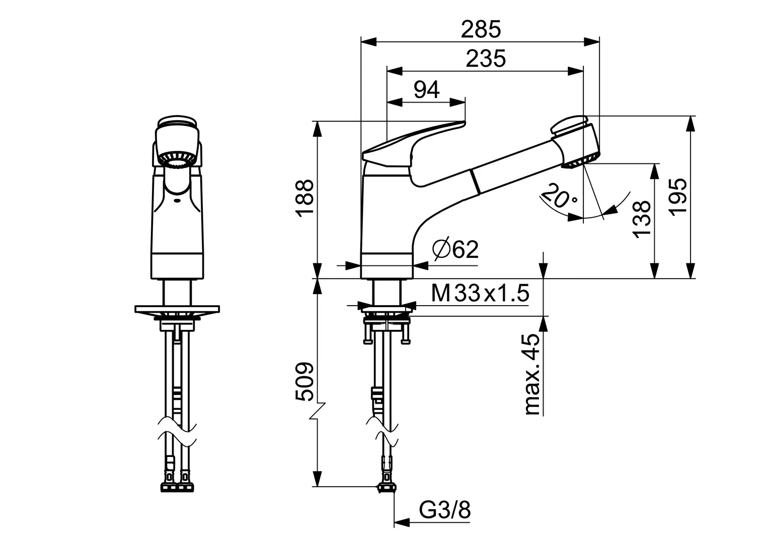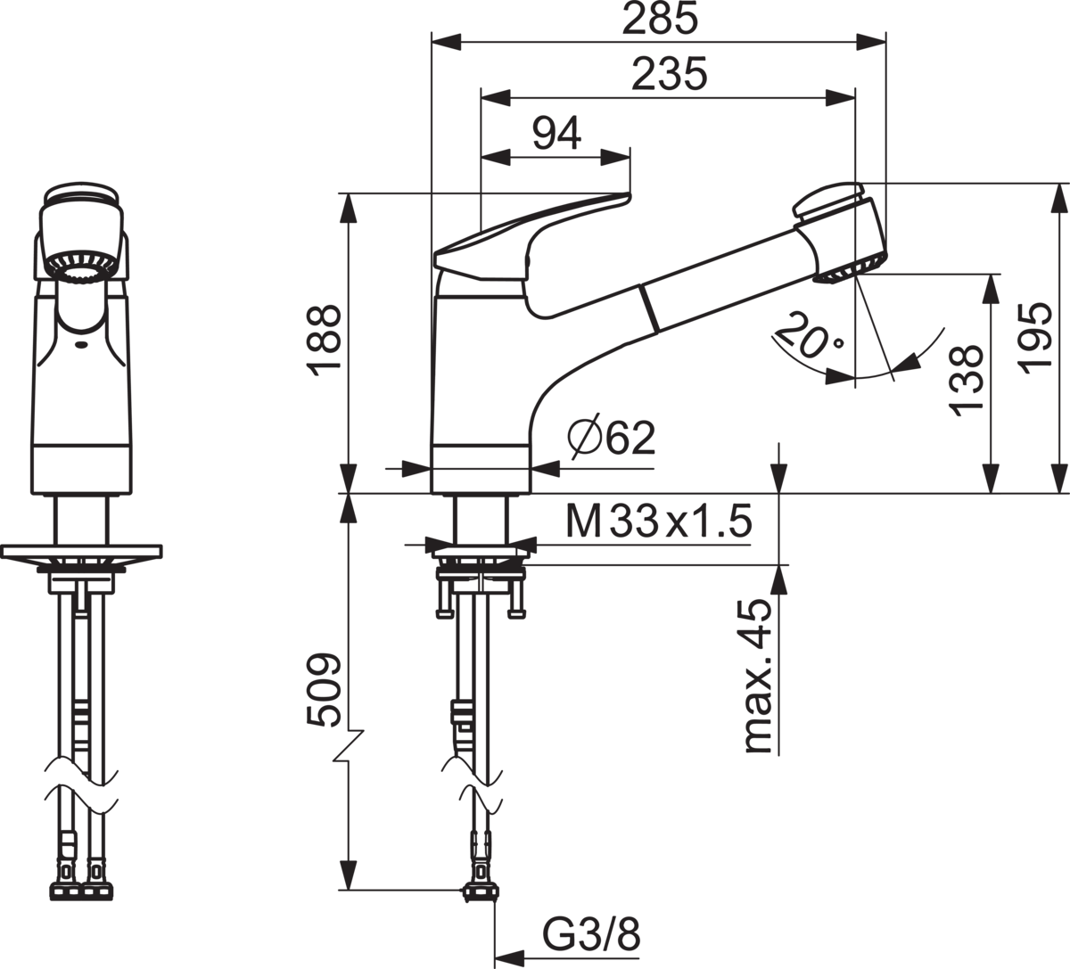 Otočné výtokové rameno, Model s vytahovací sprškou, Litá konstrukce