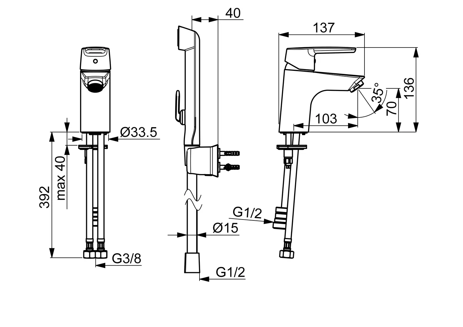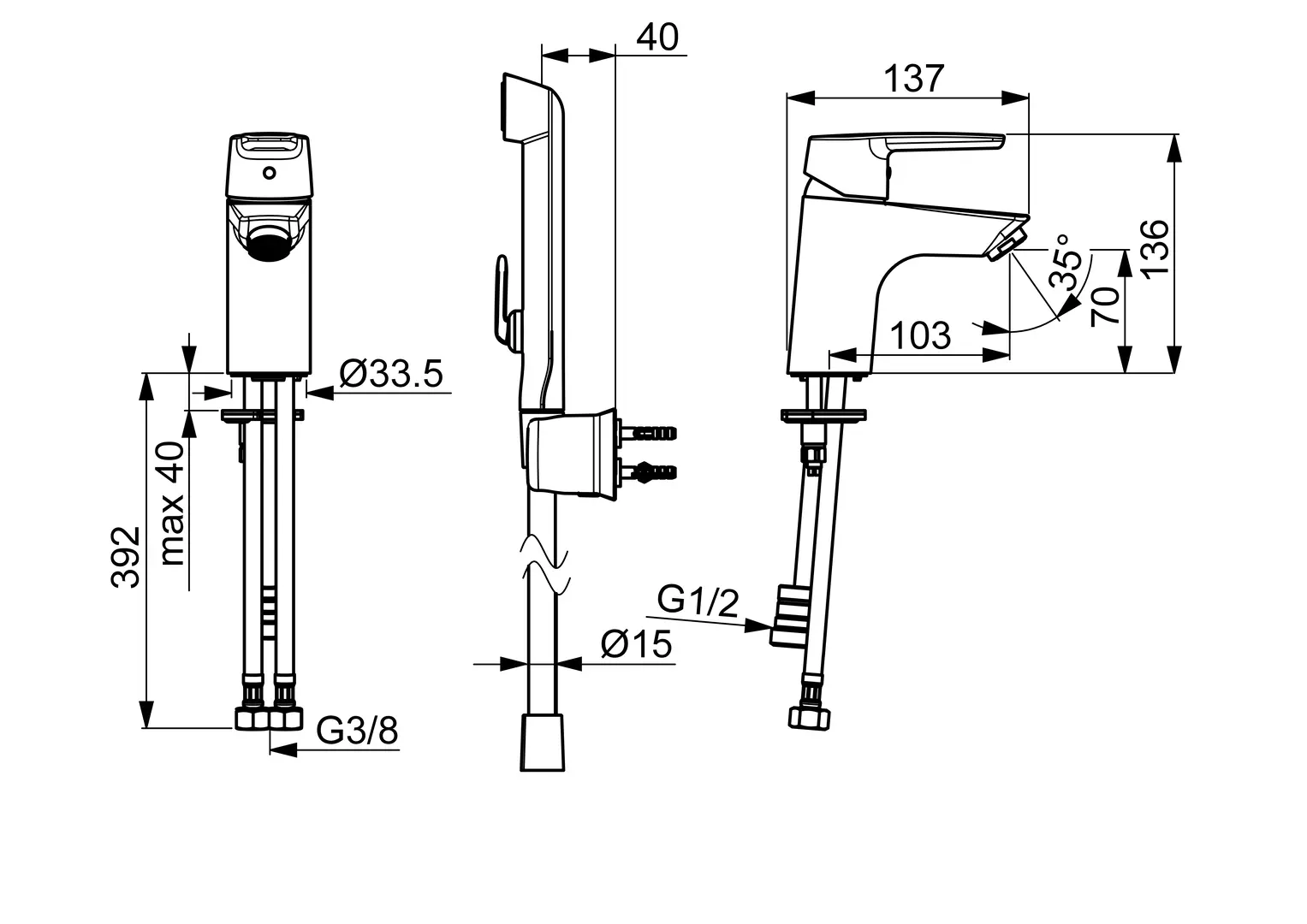 Vlastnosti Další funkce zabezpečeno proti zpětnému toku při použití v domácnosti (podle DIN EN 1717) Provzdušňovač PCA® aerátor s konstatním průtokovým množstvím nezávislým na změnách tlaku Připojení Flexibilní připojovací hadice Ruční sprcha Ruční sprcha Bidetta Páka/rukojeť Páka se symboly teplé a studené vody, Jedna ovládací páka / rukojeť Mechanické díly ø 35 mm keramická kartuše pro ovládání teploty a průtoku vody Počet proudů 1 proud Díly sprch Ruční sprcha, Držák sprchy, Sprchová hadice (1600 mm) Speciální vlastnosti Tělo baterie z mosazi DZR, Montážní systém Rapid Výtok Pevné výtokové rameno Barva Chrom Teplota Funkce pro nastavení maximální teploty a průtoku vody, Nastavitelný omezovač teploty vody (součástí dodávky, možnost dodatečné instalace) Vlastnosti průtoku Průtok při 3 barech 9 l/min Průtok při 3 barech (s regulátorem průtoku) 6 l/min Technické vlastnosti Zabezpečení proti zpětnému toku (ČSN EN 1717) HC Velikost přípojky G3/8 Velikost DN (jmenovitý rozměr) DN15 Zdroj teplé vody max. +70°C Materiál Mosaz Projekce 103 mm Pracovní tlak 0.5 - 10 bar Předpisy Norma EN EN 817, EN 1113 Třída hlučnosti I (ISO3822) Udržitelnost EPD module A1 (kg CO2 eq.) 8,59 EPD module A1-A3 (kg CO2 eq.) 9,82 EPD module A2 (kg CO2 eq.) 0,41 EPD module A3 (kg CO2 eq.) 0,81 EPD module A4 (kg CO2 eq.) 0,27 EPD module B7 (kg CO2 eq.) 1854,00 EPD module C2 (kg CO2 eq.) 0,02 EPD module C3 (kg CO2 eq.) 0,02 EPD module C4 (kg CO2 eq.) 0,08 EPD module D (kg CO2 eq.) -6,99