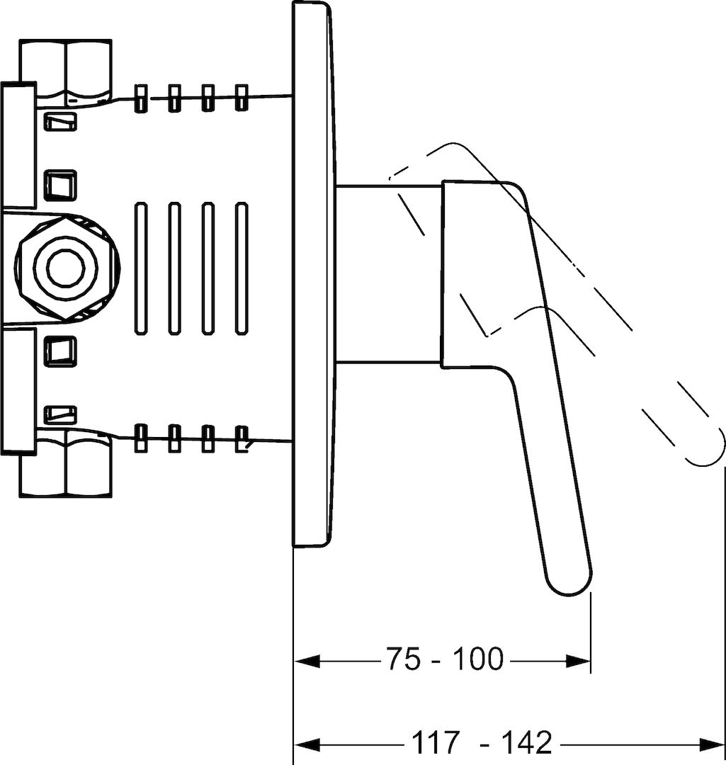 Vlastnosti Podomítkové díly Kulatá rozeta Páka/rukojeť Jedna ovládací páka / rukojeť, Páka se symboly teplé a studené vody Mechanické díly ø 48 mm keramická eco kartuše pro ovládání teploty a průtoku vody Teplota Funkce pro nastavení maximální teploty a průtoku vody, Nastavitelný omezovač teploty vody (součástí dodávky, možnost dodatečné instalace) Technické vlastnosti Zdroj teplé vody max. +80°C Pracovní tlak 0.5 - 10 bar Předpisy Norma EN EN 817