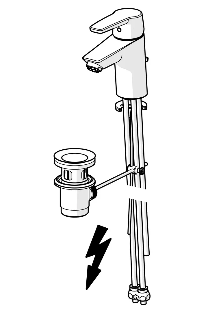 Páka se symboly teplé a studené vody, Jedna ovládací páka / rukojeť