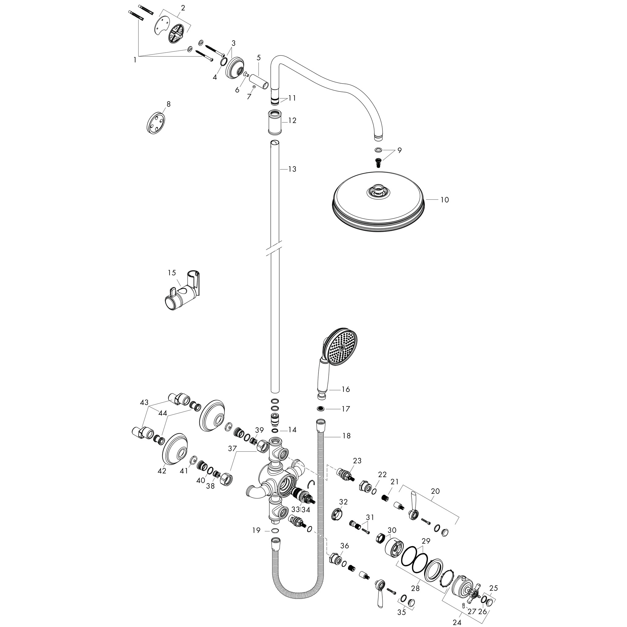 obsah balení: horní sprcha, ruční sprcha, sprchový termostat, sprchová hadice, jezdec, sprchová tyč velikost sprchové hlavice horní sprchy: 240 mm druh proudu horní sprchy: RainAir průtok proudu RainAir při tlaku 3 bary: 14 l/min druh proudu ruční sprchy: RainAir průtok ruční sprchy při 3 barech: 13,3 l/min maximální průtokové množství pro Showerpipe při tlaku 3 bary: 22,4 l/min minimální průtokový tlak: 1 bar minimální provozní tlak: 1 bar maximální provozní tlak: 10 barů jezdec s výškovým nastavením délka sprchového ramena horní sprchy: 450 mm otočné rameno sprchy: otočné rameno sprchy termostat AXOR Montreux bezpečnostní pojistka při 40 °C předem nastavitelné omezení teplé vody výtoky ovládané otočným ovladačem způsob montáže: instalace na stěnu rozměr přívodů: DN15 připojovací závit G ½ rozteč: 170 ± 32 mm s vnitřním zabezpečením proti zpětnému toku průměr sprchové tyče: 22 mm 2 spotřebiče