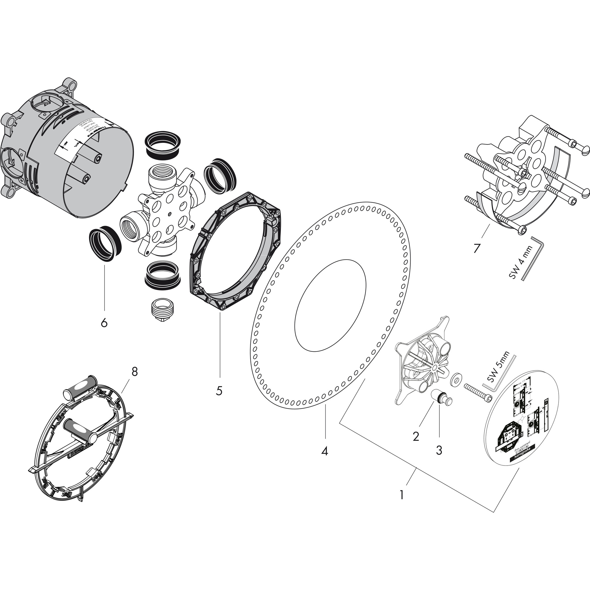 PopisNáhradní díly Popis vhodné pro všechny sprchové, vanové a termostatické vrchní sady pod omítkupřipojovací závit Rp ¾rozměr přívodů: DN20rotačně symetrická instalacezvukově izolovaná montážminimální montážní hloubka: 80 mmmaximální montážní hloubka: 108 mm Náhradní díly