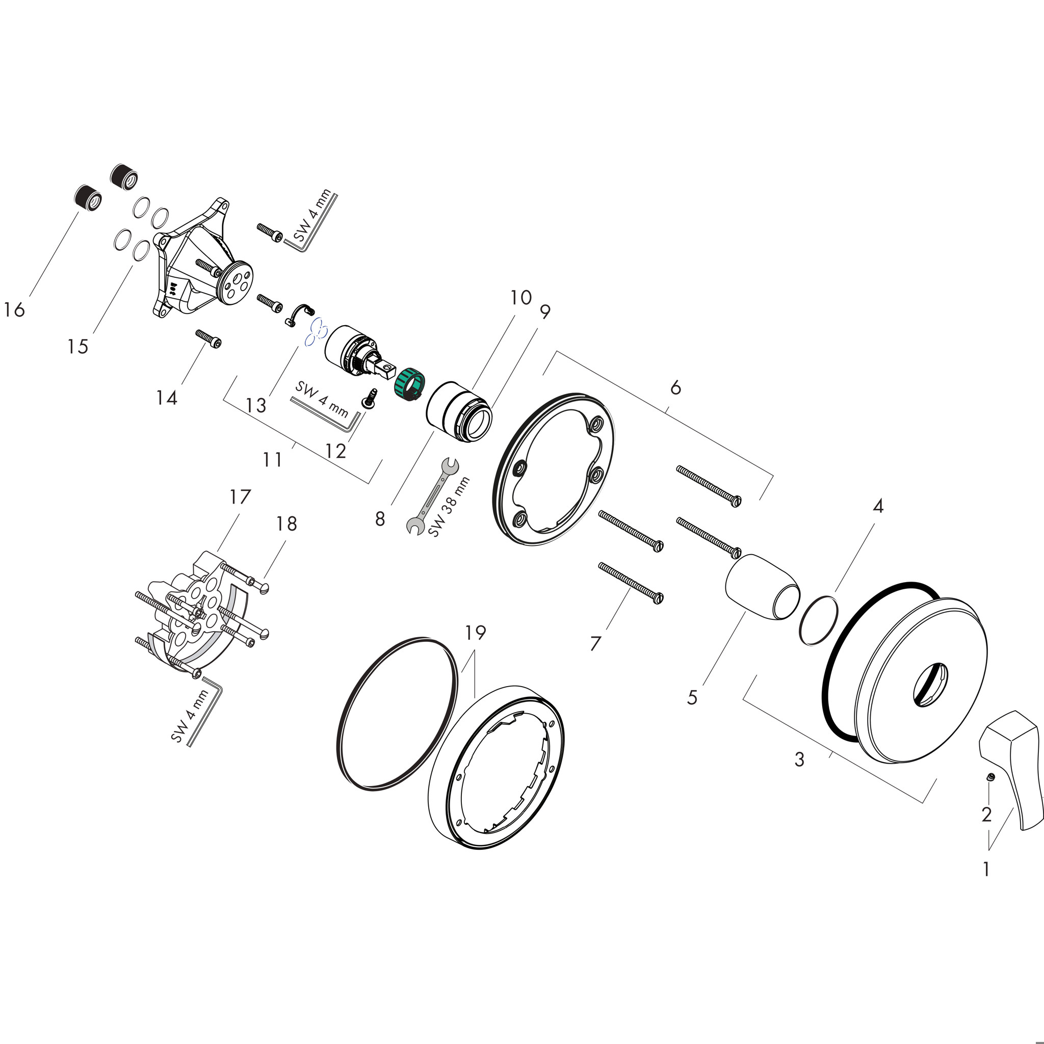 PopisNáhradní díly Popis 1 spotřebitelMaximální průtok při 3 barech: 29,3 l/minKeramický směšovací systémNastavitelný omezovač teplotymin. Provozní tlak: 1 barMaximální provozní tlak: 10 barTyp připojení: Základní těleso Náhradní díly