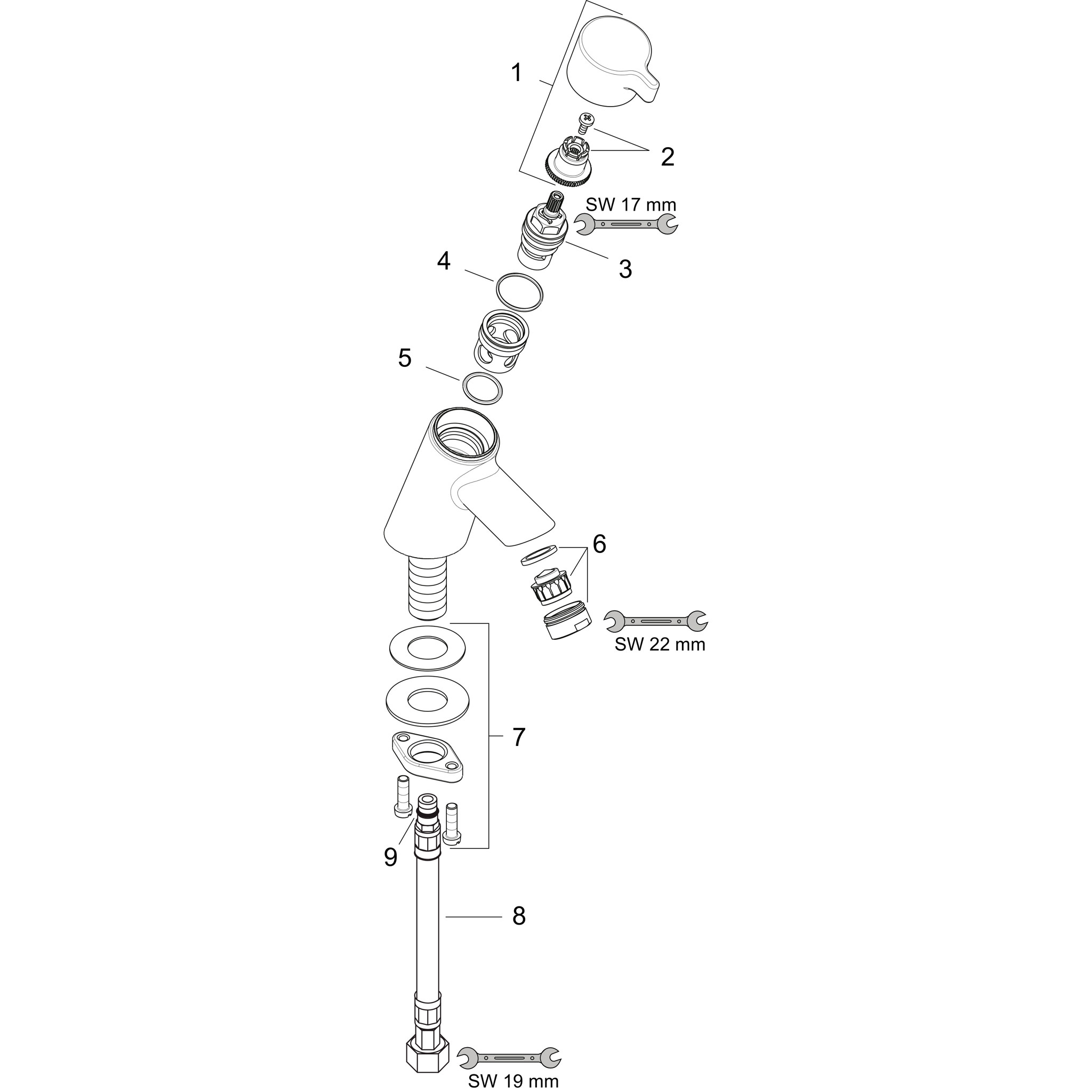 s pevnou výpustí Maximální průtok při 3 barech: 5 l/min Taxonomie EU: max. 6 l/min - možnost významného příspěvku (SC) Výstupek: 83 mm Výška výtoku: 35,0 mm Typ trysky: normální tryska Typ připojení: G ⅜ připojovací hadice Velikost přípojky: DN15 Varianta rukojeti: rukojeť Ping Keramický ventil 90°