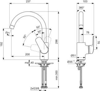 JIKA Petit, skříňka s 1 levo/pravými dveřmi včetně umývátka bez přepadu 40x23 cm, otvor pro baterii vpravo H4535111753001