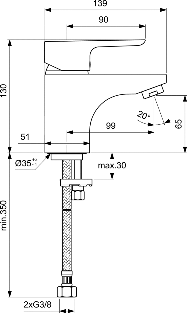 povrchová úprava chrom délka výtoku 99 mm komfortní zóna 66 mm výška baterie 129 mm s flexibilními hadicemi G3/8 montáž zespodu - upevnění EASY FIX s centrovacím a těsnicím kroužkem Click-Kartuše průměr 40 mm s keramickými disky pivot kartuše z nerez oceli integrovaný zásobník maziva (vhodné pro potravinářské použití) integrovaný omezovač teplé vody + ECO funkce životnost testována dle EN 817 ochrana proti hluku DIN 4109, třída 1.