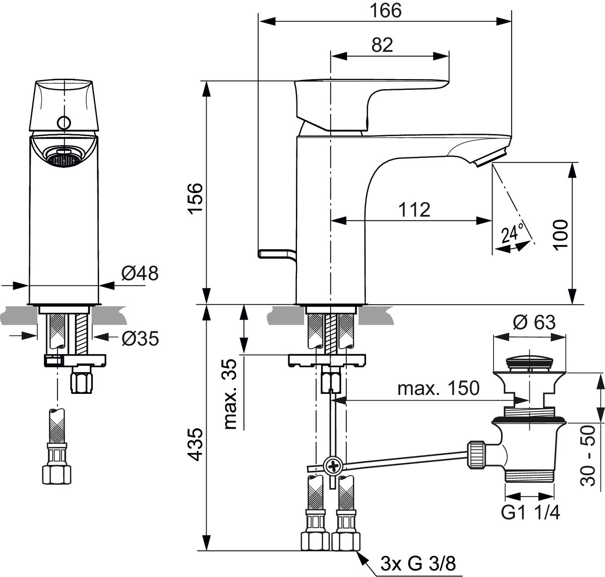 Upevnění: montáž na stojan Typ ovládání: Jediná páka Otvory pro kohoutky: 1 Provozní tlak: 3 bar Průtok: 6 litrů za minutu Materiál: mosaz Sběr: Connect Air Schválení: DIN EN 817, DIN EN 200, DIN 4109 skupina 1 EasyFix, technologie Click, omezovač teploty teplé vody, 5L regulátor proudu, nízký tlak, úspora vody, úspora energie Výška: 156 mm Šířka: 48 mm Hloubka: 166 mm : 166 Čistá hmotnost: 1,75 kg Technologie: Firmaflow