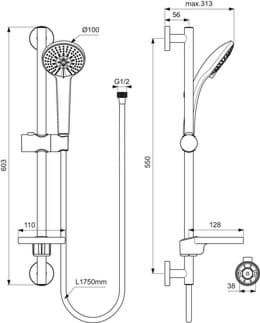 Obsah balení: Ruční sprcha+sprchová hadice+sprchová tyč