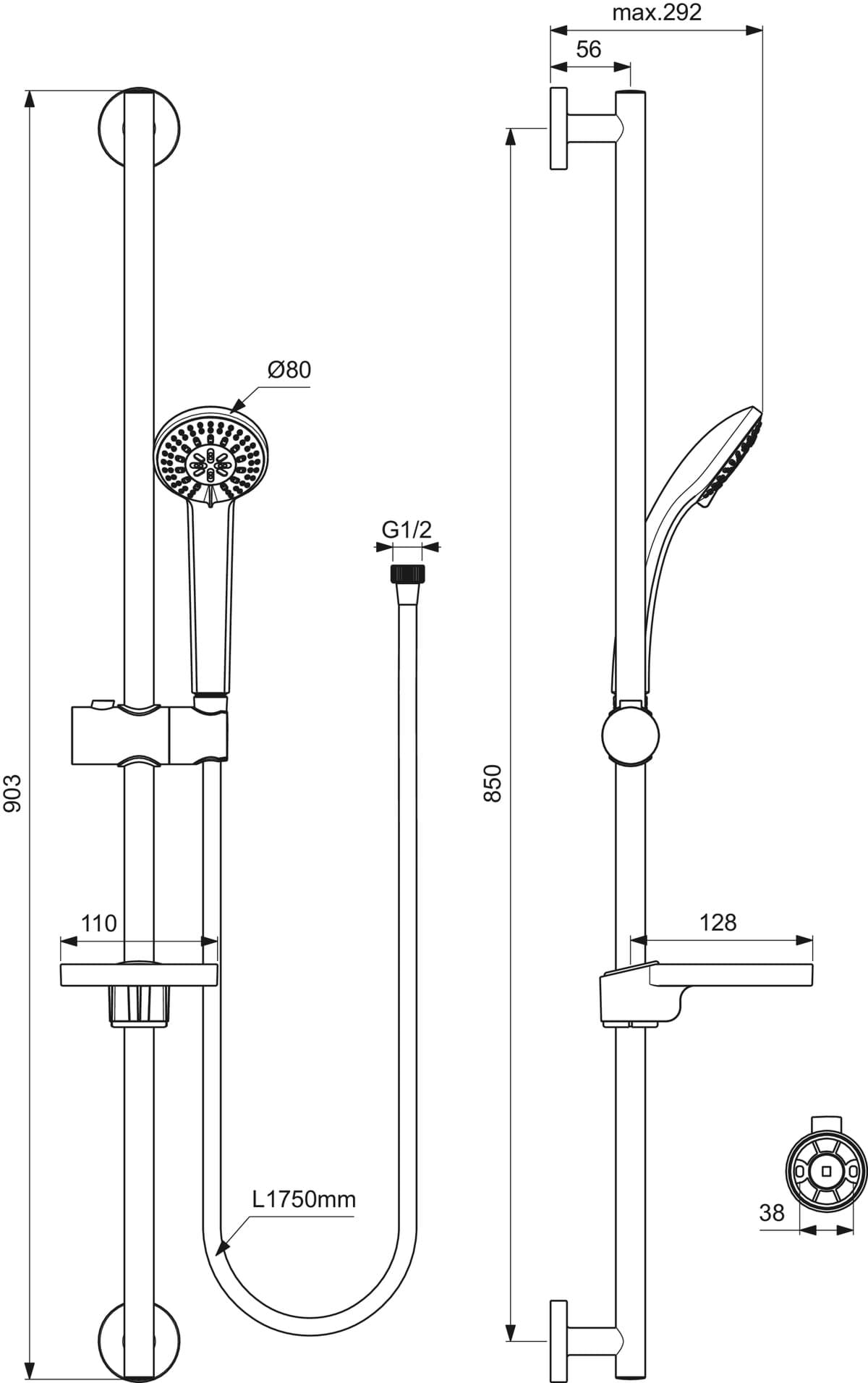 Typ: Sprchová kombinace Obsah balení: Ruční sprcha+sprchová hadice+sprchová tyč Kolekce: Idealrain 3 typy proudů, povrch SmartShine, IdealFlex, EasyClean Výška: 909 mm Hloubka: 305 mm : 305 Průtok: 8 litrů za minutu Materiál: mosaz Materiál: mosaz: Montáž: na stěnu, na povrch Čistá hmotnost: 1,19 kg Provozní tlak: 3 bary