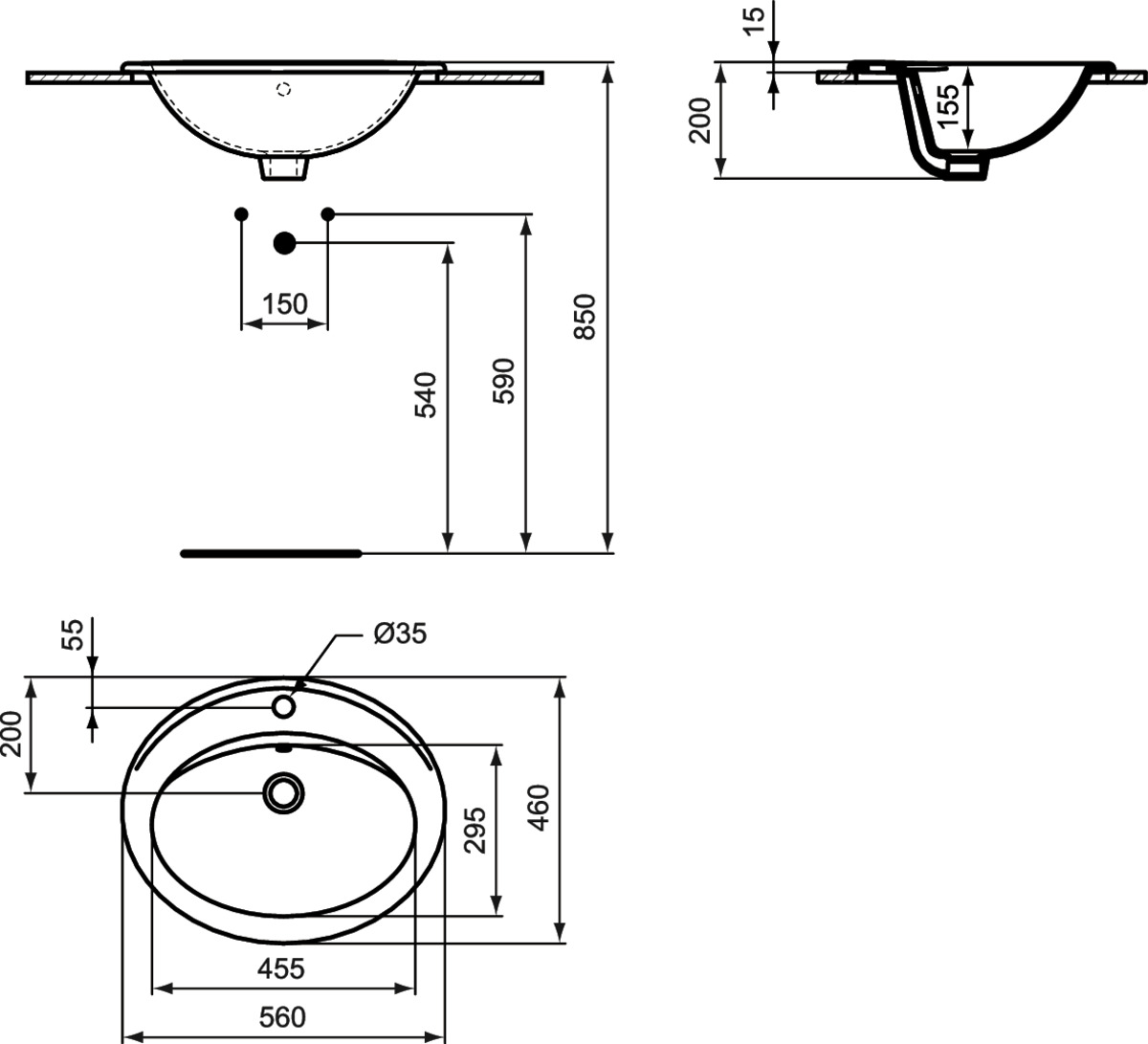 IDEAL STANDARD Simplicity umyvadlo zápustné 56x46cm s otvorem E874901 bílá