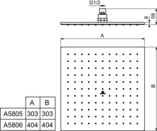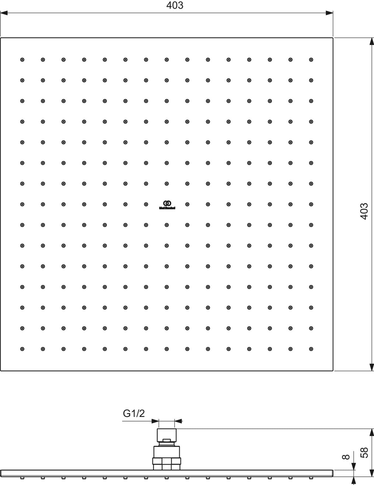 Kolekce: Idealrain Atelier Průtok: 12 litrů za minutu Tvar: Čtvercový Upevnění: Stropní, nástěnný nebo sprchový systém EasyClean Výška: 403 mm Šířka: 403 mm Hloubka: 58 mm : 58 Materiál: mosaz Čistá hmotnost: 4,33 kg Provozní tlak: 3 bar Typ: horní sprcha