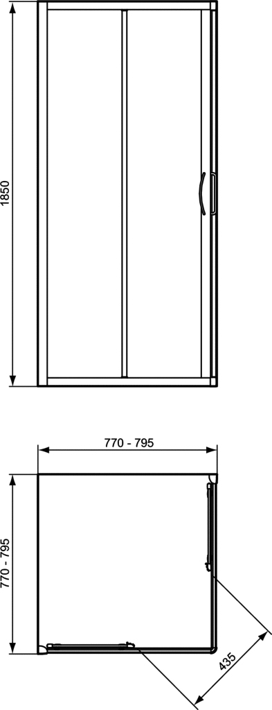 Tipica čtvercový sprchový kout s posuvnými dveřmi, výška 185 cm. Provedení výplně: čiré sklo (3 mm). Magnetické zavírání. Výškově nastavitelná kolečka na horních a dolních posuvných panelech. Povrchová úprava profi lu: chrom - Silver Brill. Lze kombinovat se všemi čtvercovými prchovými vaničkami 90x90 cm nebo 80x80 cm.