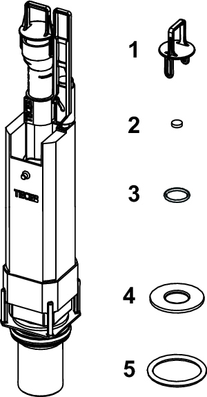 Drain valve for combination with Octa II, Base 8, Compact 320 and Base 320 cisterns, including valve seat and throttle.