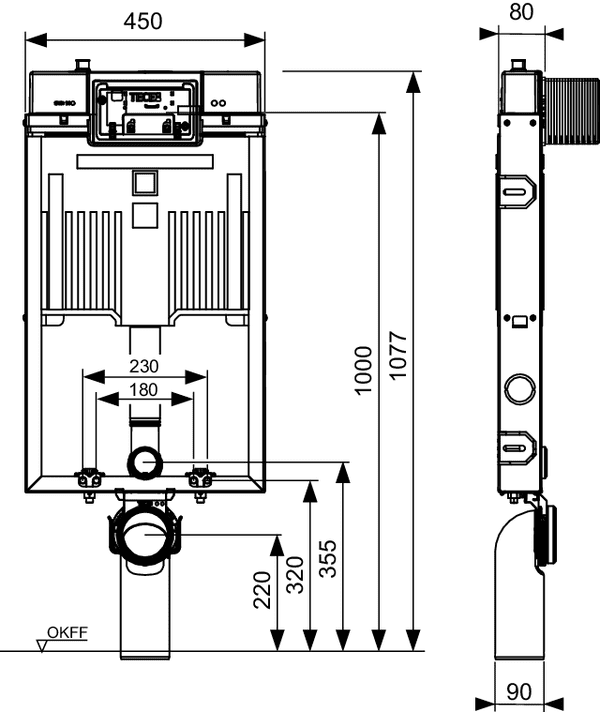 GEBERIT Montážní prvek Geberit Kombifix Basic pro závěsné WC, 108 cm, se splachovací nádržkou pod omítku Delta 12 cm #110.100.00.1