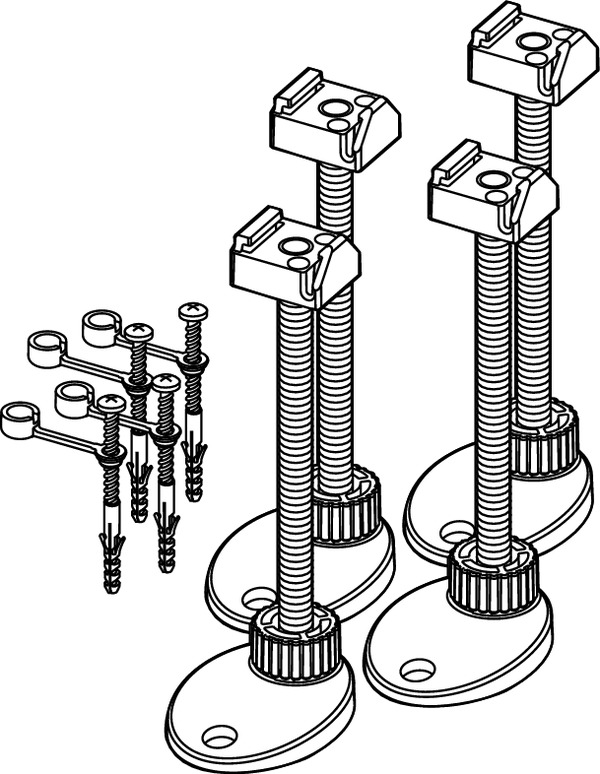 PopisNáhradní díly Popis Assembly feet to make it easy to adjust the height of the channel body and fix the position during shell assembly. Consisting of: 4 x assembly feet incl. sound-proofing cap and mounting material Náhradní díly