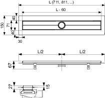Rovné tělo žlabu pro instalaci do nátěru s přírubou a těsnící páskou Seal System pro vytvoření testovaného a certifikovaného spojení sprchového žlabu TECEdrainline ke kompozitnímu těsnění. Součást balení: Tělo žlabu s přírubou z leštěné nerezové oceli, materiál 1.4301 (304 ) Těsnicí páska Seal System s kašírováním pro přímé nalepení na přírubu žlabu při použití tekuté či fóliové hydroizolace Stavitelné podpěry pro upevnění do stěrky nebo pro ukotvení volitelných montážních podpěr Středový odpad pro napojení sifonu Vnitřní spád pro lepší odtok vody a samočisticí účinek Těsnění Montážní výška po vrchní hranu dlažby (v závislosti na odtoku): 67 mm, "vertikální" sifon, 68,5 mm, "ultra-nízký" sifon 95 mm, "snížený" sifon 120 mm, "normální" sifon 148 mm, "max" sifon Objednávejte prosím zvlášť: Designový rošt nebo rošt pro vložení dlažby Sifon Plně nastavitelné podpěry (volitelné) Zvuková izolační podložka Drainbase (volitelné příslušenství), splňuje požadavky německých protihlukových norem DIN 4109 a VDI 4100 s úrovní ochrany před hlukem (SSt) I až III.