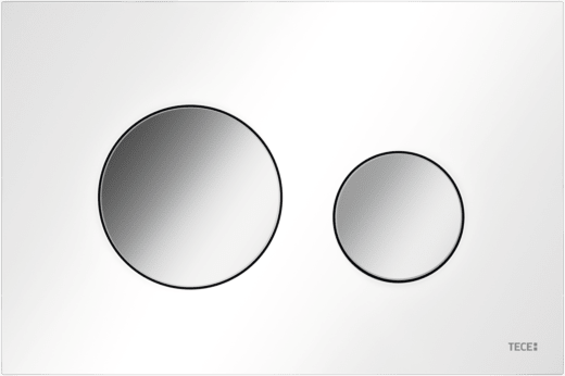 Flush plate for TECE cisterns, for front or top actuation. Very flat plastic flush plate, flush buttons with rubber inlays, including actuation rods and mounting materials. Suitable for flush-mounted installation in combination with toilet installation frame and spacing frame. Compatible with insert chute for cleaning tablets. Dimensions (W x H x D): 220 x 150 x 5 mm Note: Ensure minimum brick-wall construction thickness of 23 mm!