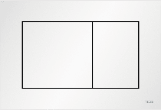 Flush plate for TECE cisterns, for front or top actuation. Very flat plastic flush plate, buttons with rubber inlays on both sides. Incl. actuating rods and mounting material. Suitable for flush-mounted installation in combination with toilet installation frame and spacing frame. Compatible with insert chute for cleaning tablets. Dimensions (W x H x D): 220 x 150 x 5 mm Note: Ensure minimum brick-wall construction thickness of 23 mm!