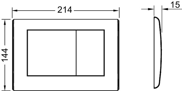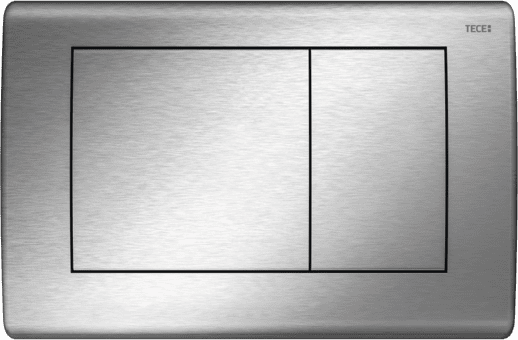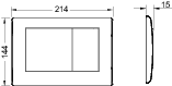 Stainless steel flush plate for TECE cisterns, for front or top actuation, attached with concealed screws. Stop collar with rubber inlays on both sides. Incl. actuating rods and mounting material. Compatible with insert chute for cleaning tablets. Dimensions (W x H x D): 214 x 144 x 15 mm