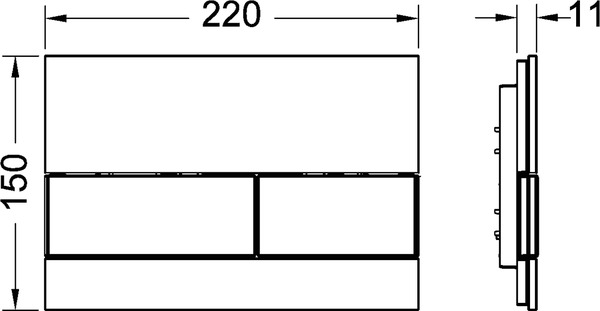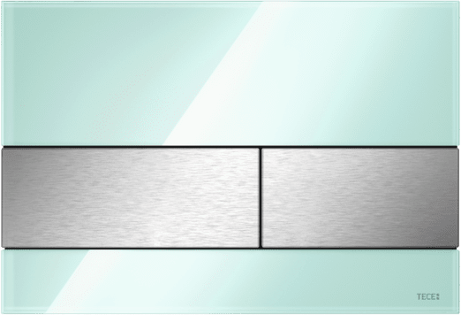 TECEsquare glass toilet flush plate for dual-flush system Flush plate for TECE cisterns, for front or top actuation. Flat glass flush plate with two spring-mounted actuation rocker buttons. Suitable for flush-mounted installation in combination with toilet installation frame for flush-mounted install (e.g. Item No. 9240649). Compatible with insert chute for cleaning tablets. Dimensions (W x H x D): 220 x 150 x 11 mm Item number: 9240804